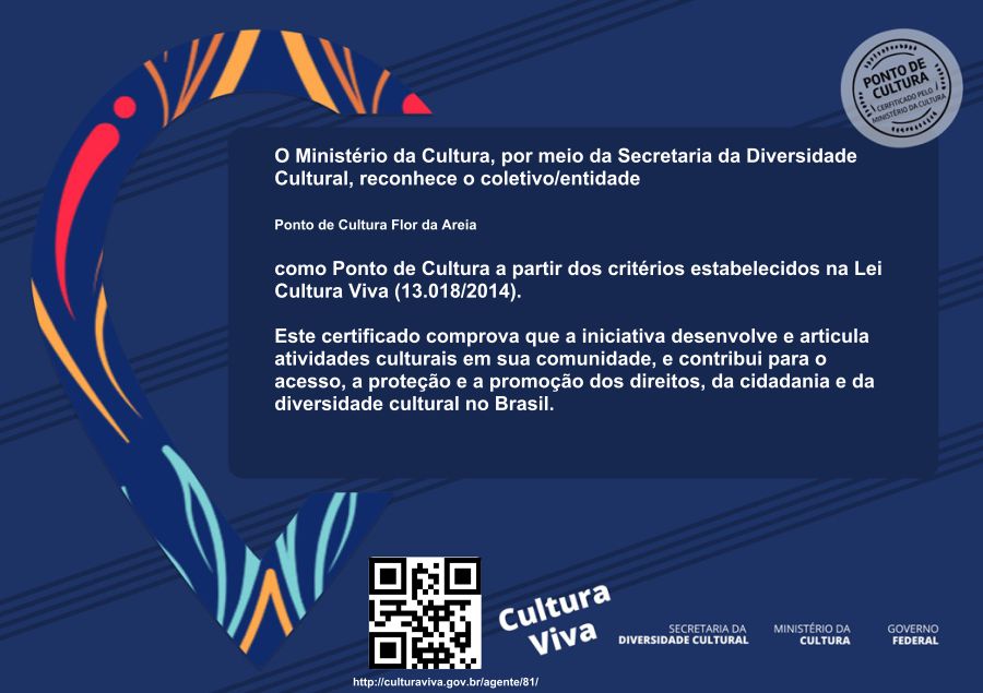 O Ponto de Cultura Flor da Areia é um espaço de aprendizado e realização, para a produção de cinema e audiovisual em tecnologias digitais, dedicado às comunidades da região praieira gaúcha para que as gentes da beira possam se manifesrtar e registrar sua memórias, suas histórias, seus pensamentos e soluções do cotidiano da região praieira gaúcha. O Ponto de Cultura Flor da Areia é um projeto desenvolvido pelo Mestre Ivan Therra, sendo contemplado no Edital 11/2012 - SEDAC/RS - MINC. Resultando em um convênio assinado entre a Casa da Cultura do Litoral, a SEDAC/RS - Secretaria de Estado da Cultura do Rio Grande do Sul e o MINC - Ministério da Cultura. A Casa Da Cultura do Litoral foi a proponente contemplada e recebeu o Certificado de Ponto de Cultura que está registrado na Plataforma Cultura Viva do Governo Federal. |
